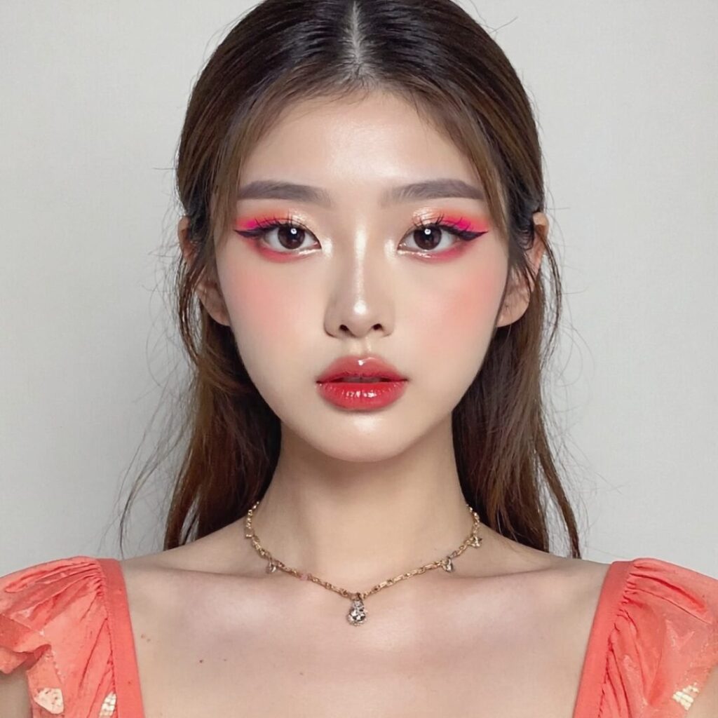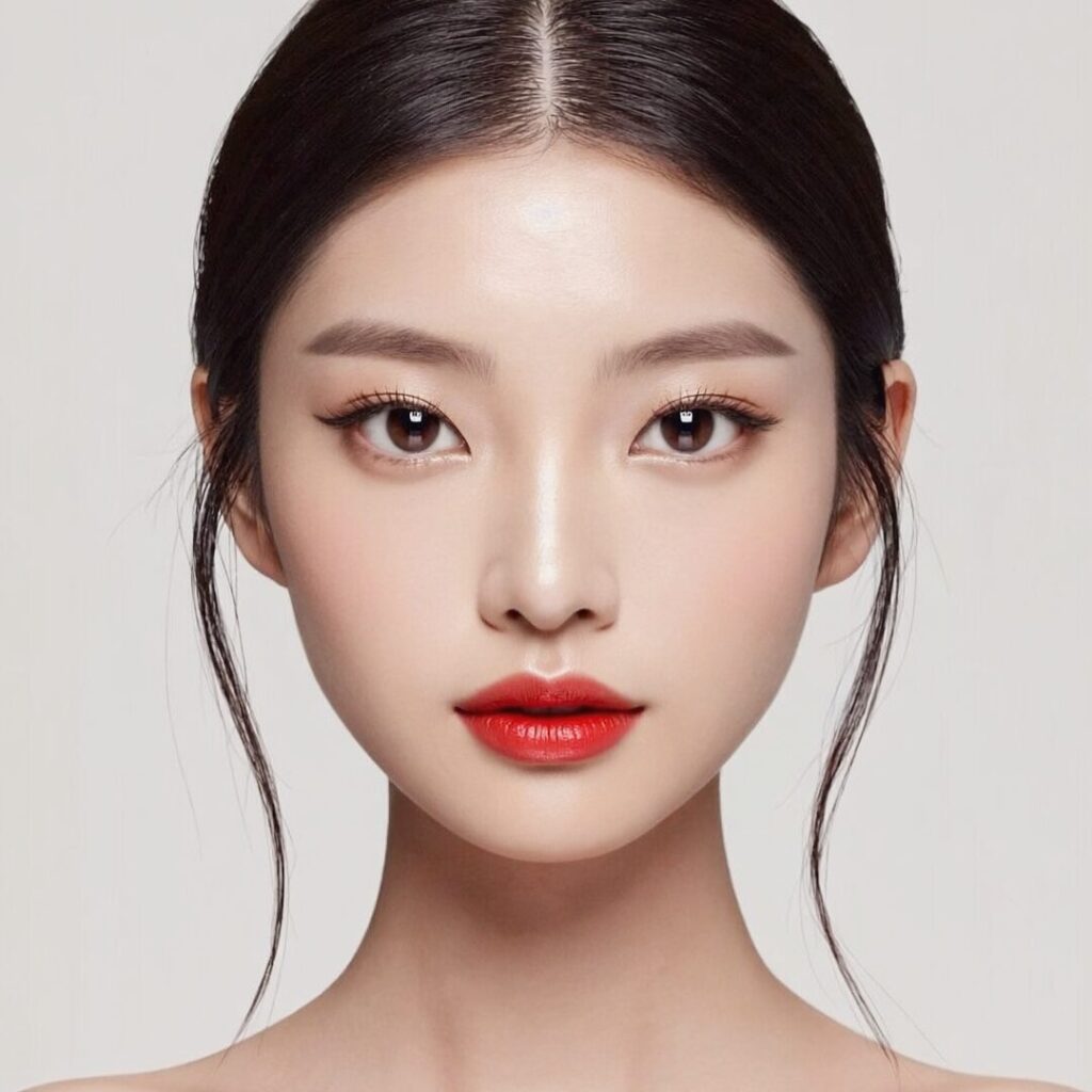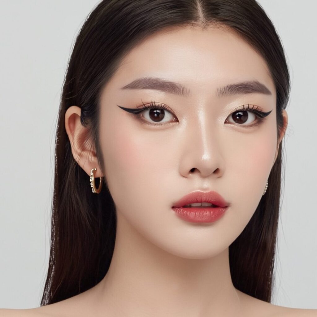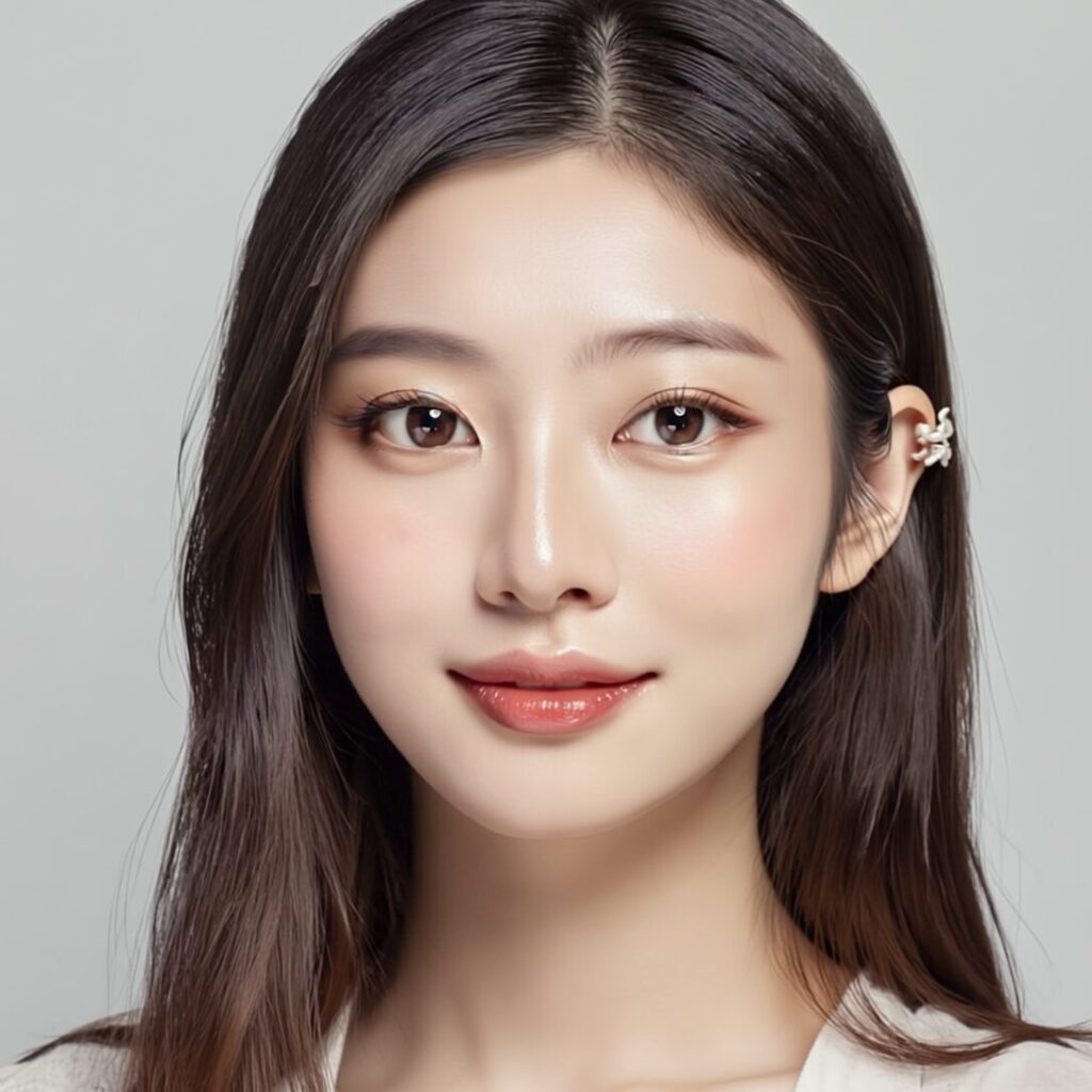 韓国アイドル系透明感のあるツヤ肌に、目元はほどよく強さを出した“盛れるのに上品”な印象。
